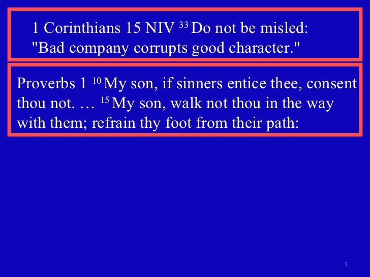 Ppt Do Not Be Mislead Bad Company Corrupts Good Character 1 Corinthians 15 33 Niv Powerpoint Presentation Id 2192986 from image1.slideserve.com Maybe you would like to learn more about one of these? We did not find results for: Bad company corrupts good character niv. Check spelling or type a new query.